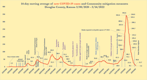 Douglas County’s coronavirus numbers continue to drop; fewer than 10 new COVID-19 cases have been added to the tally since Lawrence-Douglas County Public Health’s last update on Friday.