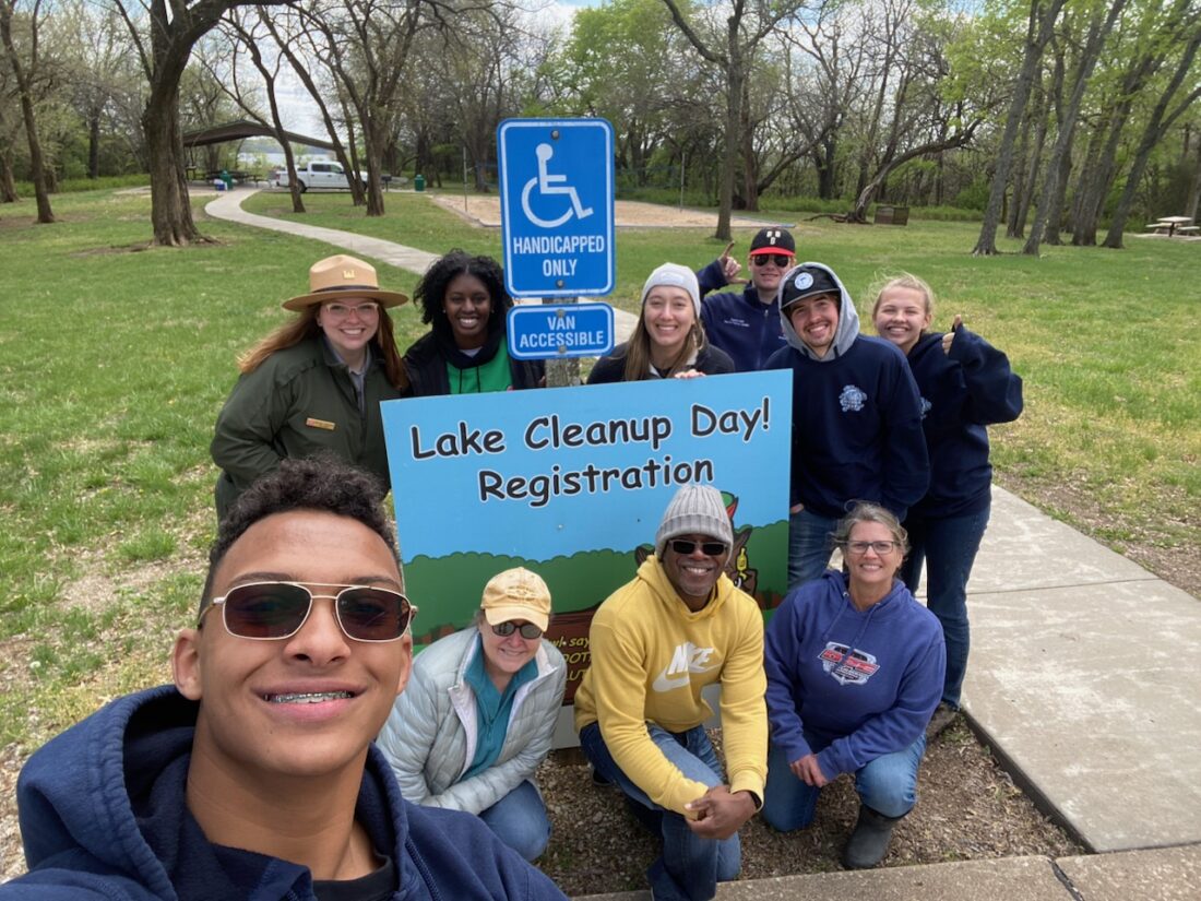 Savanah Hancock, pictured on the right end of the back row, and others in her Sea Scouts group volunteer on Earth Day.