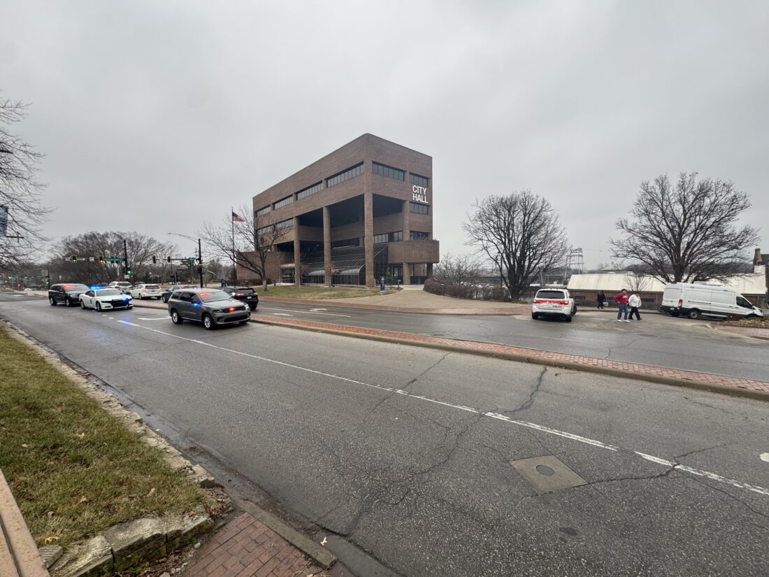 Lawrence City Hall and a multitude of law enforcement vehicles are pictured on Jan. 5, 2026.