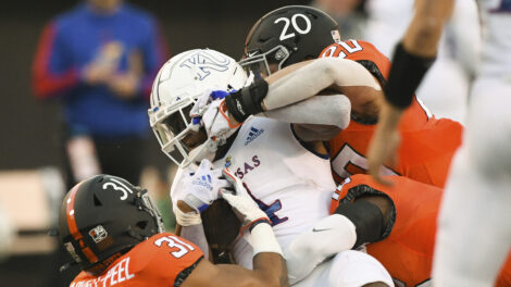 The Kansas football running back room isn’t the only one where available bodies are dwindling late in the season. When asked during his Monday press conference which tight ends might actually be in uniform and able to contribute in the team’s upcoming season finale versus West Virginia, KU head coach Lance Leipold had to think for a second.