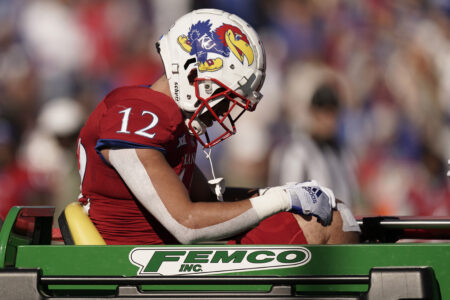 The Kansas football team’s quarterback room isn’t the only one experiencing shrinking numbers late in the season.