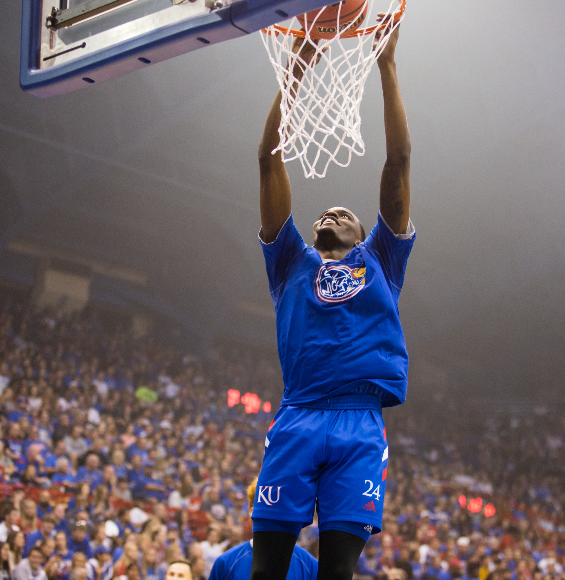 The evening’s biggest shocker came when the final buzzer sounded on the Late Night scrimmage and one of the quietest players in recent Kansas basketball history took the court with microphone in hand.