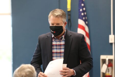 U.S. Sen. Roger Marshall in Lawrence on Saturday expressed some support for vaccine mandates in general — but not for COVID-19.