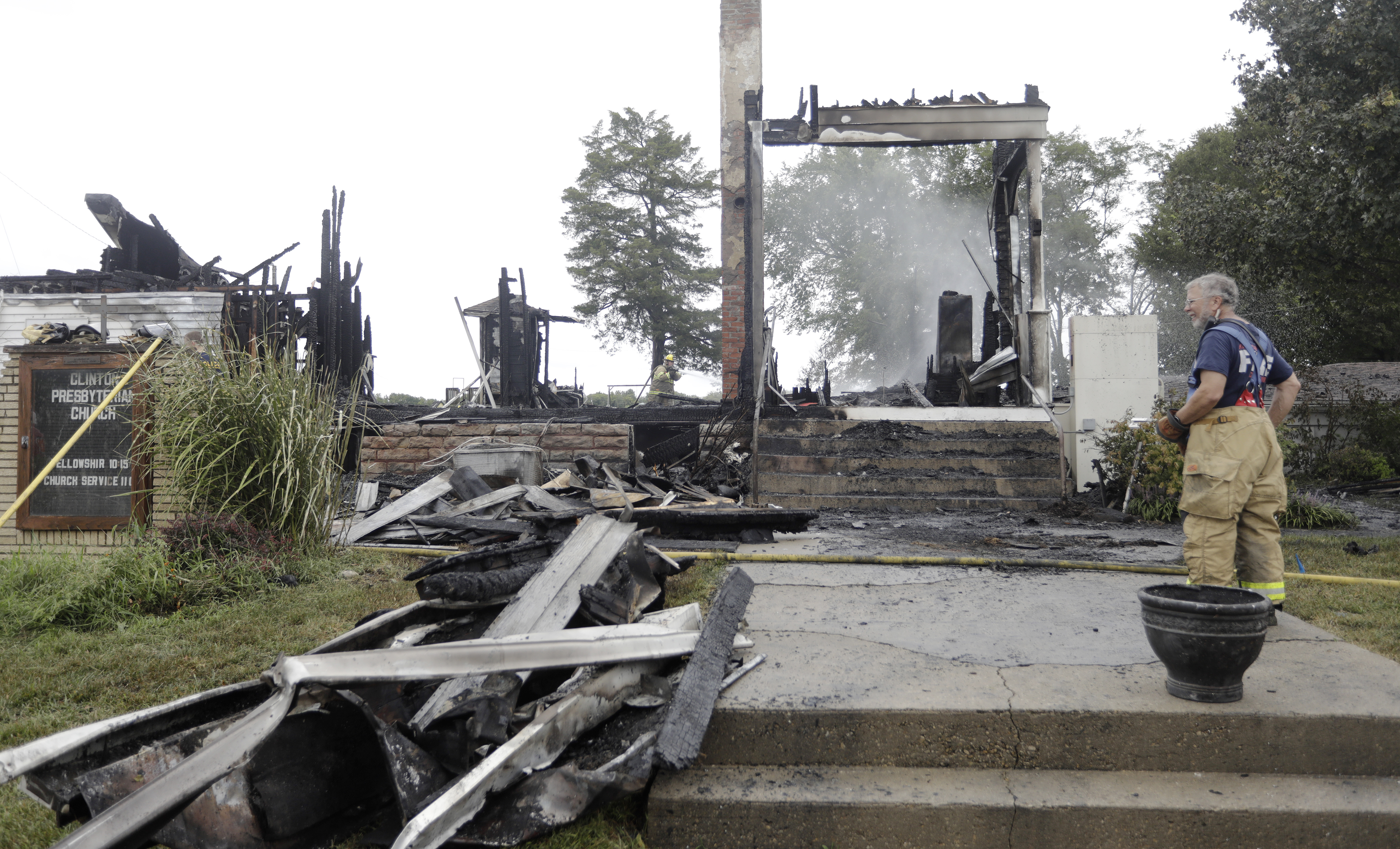 The Clinton Presbyterian Church in rural Douglas County caught fire and burned down early Friday morning, leaving charred rubble where a century-old community landmark once stood.