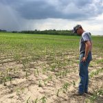 Scouting a field of corn, Lowell Neitzel knelt down and gently turned over a tattered leaf of a plant as dark clouds were building in the northwest Thursday afternoon.