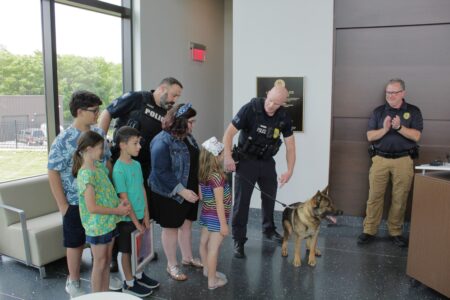 But Thursday's party wasn't for a two-legged officer — it was for Cheeseburger, the 10-year-old German shepherd who spent eight years on the Lawrence Police Department's K-9 ...