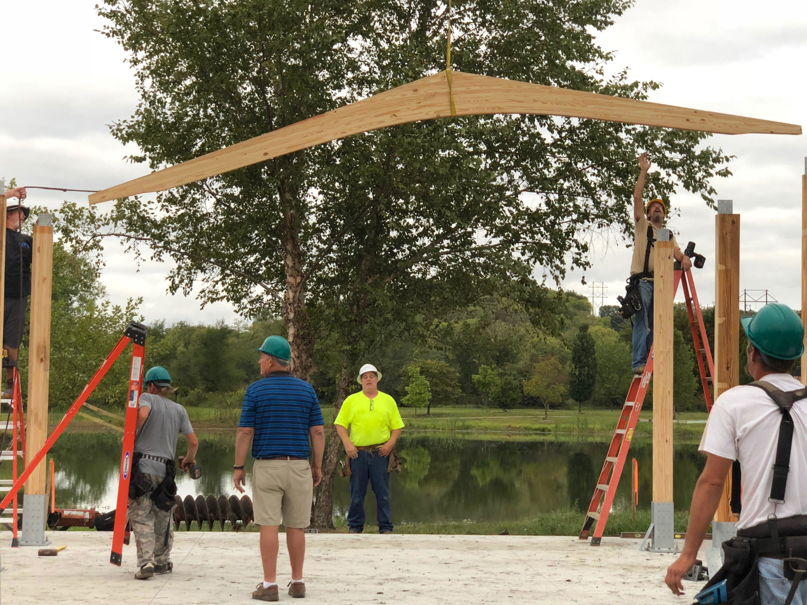 The three Lawrence Rotary clubs along with the Lawrence Home Builders Association and the city’s Parks and Recreation Department on Monday began building a new gathering shelter in the Lawrence Rotary Arboretum, 5100 W. 27th St.