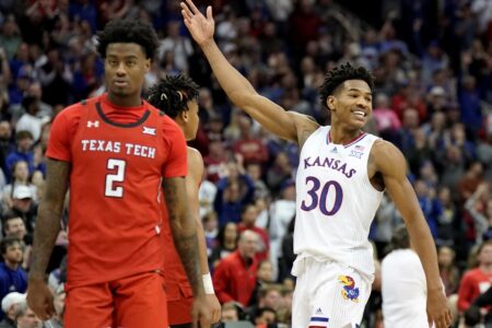 KANSAS CITY, Mo. — Ochai Agbaji was named the Big 12 tournament's most outstanding player after he scored 16 points and had seven rebounds in the top-seeded Kansas men's basketball team's 74-65 victory over third-seeded Texas Tech on Saturday at T-Mobile Center.