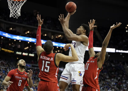 McCormack had team highs of 18 points and 11 rebounds for his 10th double-double of the season in the top-seeded Kansas men's basketball team's 74-65 win over third-seeded Texas Tech in the championship game.