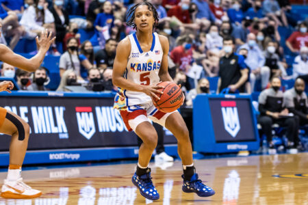 When Kansas men's basketball coach Bill Self took Ochai Agbaji off the court with 12:50 to go in the first half of the 70-63 overtime win against No. 21 Texas on Saturday, he pulled Agbaji next to him on the sideline and offered a few words of encouragement.