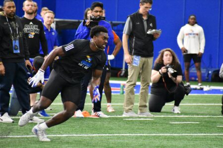 The wide receiver was one of six players who participated in the annual showcase, a workout for more than a dozen NFL scouts held at the Jayhawks' indoor practice facility.