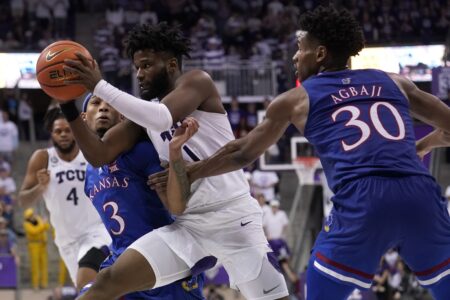It was back-to-back losses for Kansas and back-to-back wins over ranked teams for the first time in TCU history for the Horned Frogs on Tuesday night in Fort Worth, Texas.