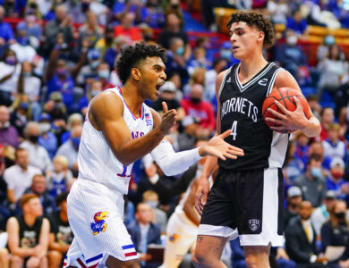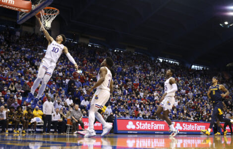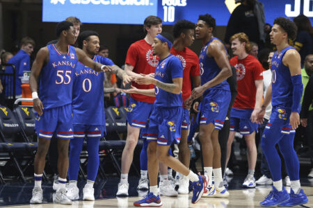Morgantown, W.Va. — Supported largely by their nine Quad 1 wins — tied for the most in NCAA Division I — the Kansas men’s basketball team is in position to land a No. 1 seed in the upcoming NCAA Tournament.
