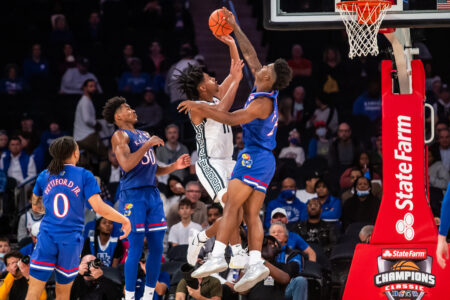 New York — On a night when Kansas senior Ochai Agbaji carried the Jayhawks’ offense, three freshmen playing the first game of their careers showed that this KU team already has reliable pieces on the bench.