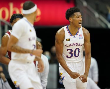 Kansas City, Mo. — By virtue of his spot in the jump circle to open Thursday’s Big 12 quarterfinal contest with No. 25 Oklahoma, Kansas junior Ochai Agbaji was immediately thrust into the spotlight on Thursday night at T-Mobile Center.
