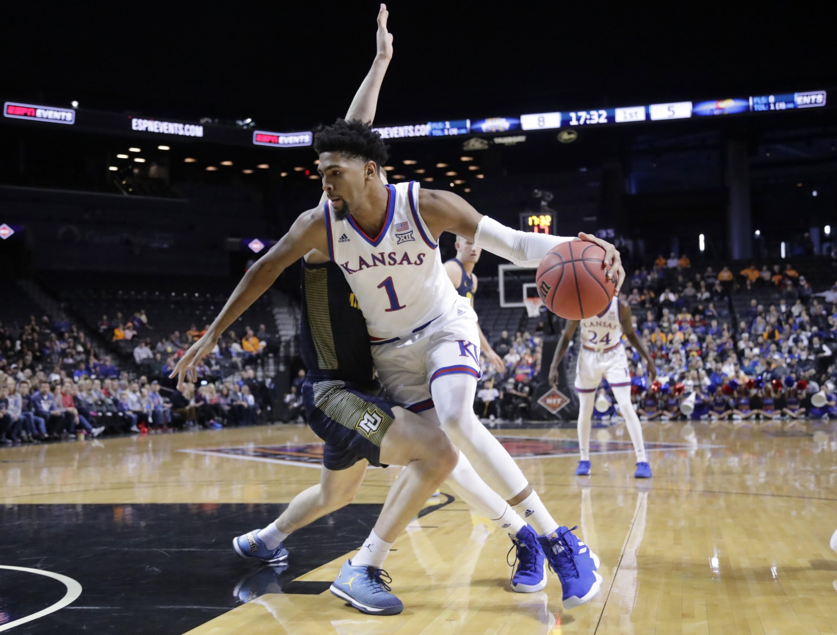 Brooklyn, N.Y. — A new-look lineup and some added energy and aggression saved the second-ranked Kansas basketball team in a 77-68 victory over Marquette in the NIT Season Tip-Off semifinals Wednesday night at Barclays Center.