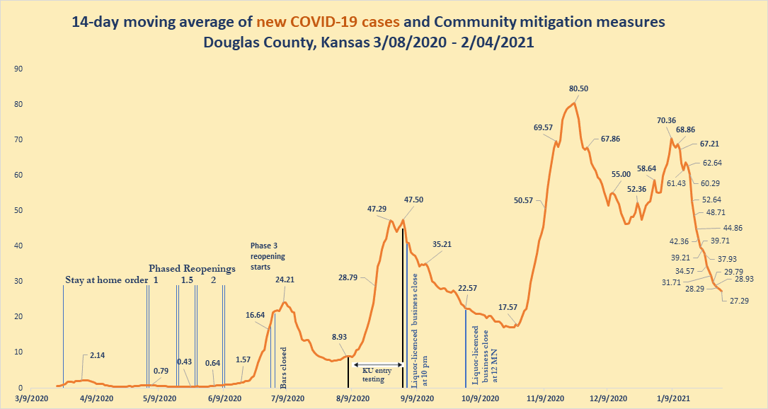 Douglas County’s 14-day average of new COVID-19 cases for Feb. 4, 2021
