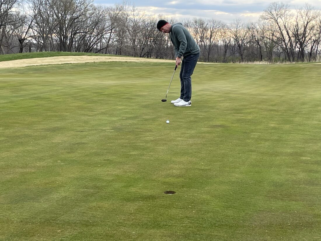 He opened with a 1-under par 71 at Eagle Bend, after starting in conditions that featured a 33-degree wind chill, no less. He followed that up with a 2-under 70 on the Jayhawk Club’s 18-hole course and a 2-under 34 on the Jayhawk Nine.
