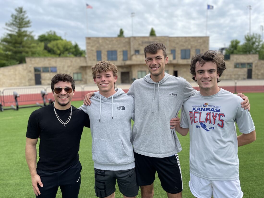 From left to right, Free State's 4x800 relay team of Jack Keathley-Helms, Jake Loos, Jake Hedges and Ben Shryock took second place at the state track meet in Wichita on Saturday, May 28, 2022.