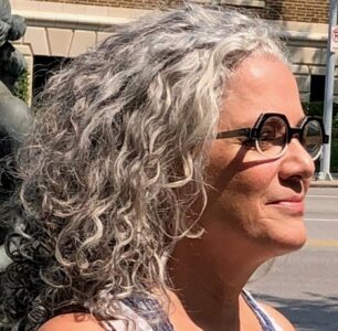 She was born in Normal, Illinois on July 29, 1959, to Hazel (Hatch) and Keith Wharff. The family moved to Cedar Rapids, Iowa, where Mary graduated from Linn-Mar High School in 1977 and Coe College in 1982. She spent the rest of the 80s in Atlanta writing fundraising appeals, doing freelance writing, and becoming a singer-songwriter. Mary moved to Lawrence in the 1990s, ‘to return to the Midwest and live under a big sky’ and to become a full-time writer and artist. She completed an MFA in English at KU and later led writing workshops at the Lawrence Arts Center. Her stories and poems are widely published and admired. In recent years, she turned more to the visual arts, particularly printmaking and mosaic. During her years in Lawrence, Mary met Michael Andrew ‘Andy’ Bloomer, the love of her life; they married on Leap Day 2000.