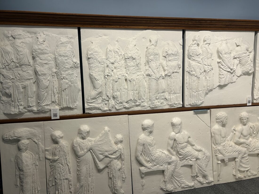Plaster casts of panels from the Parthenon Frieze on display at the Wilcox Classical Museum at KU.