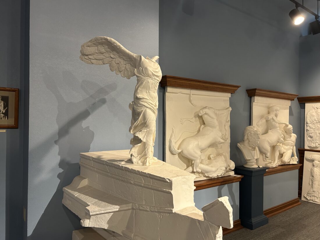 But step inside the entry way of the museum that takes up a just couple of rooms on the left side of the first floor of Lippincott Hall, you’re greeted by an array of imposing Greek and Roman statues and engravings, including the Venus de Milo, the Nike of Samothrace, portions of the Parthenon Frieze and the Apollo Belvedere — or at least their lookalikes made of plaster casts and scale reproductions.