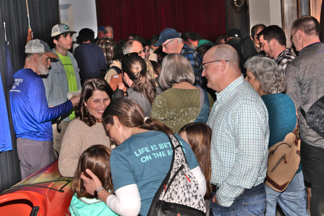 The crowd mills about before the screening of the 2025 Wild and Scenic Film Festival hosted by the Lawrence based group Friends of the Kaw. This year, the festival will take place Friday, Feb. 27 at Liberty Hall, 644 Massachusetts St. Organizers say the annual event has been part-fundraiser, part-community gathering time for the conservation group.