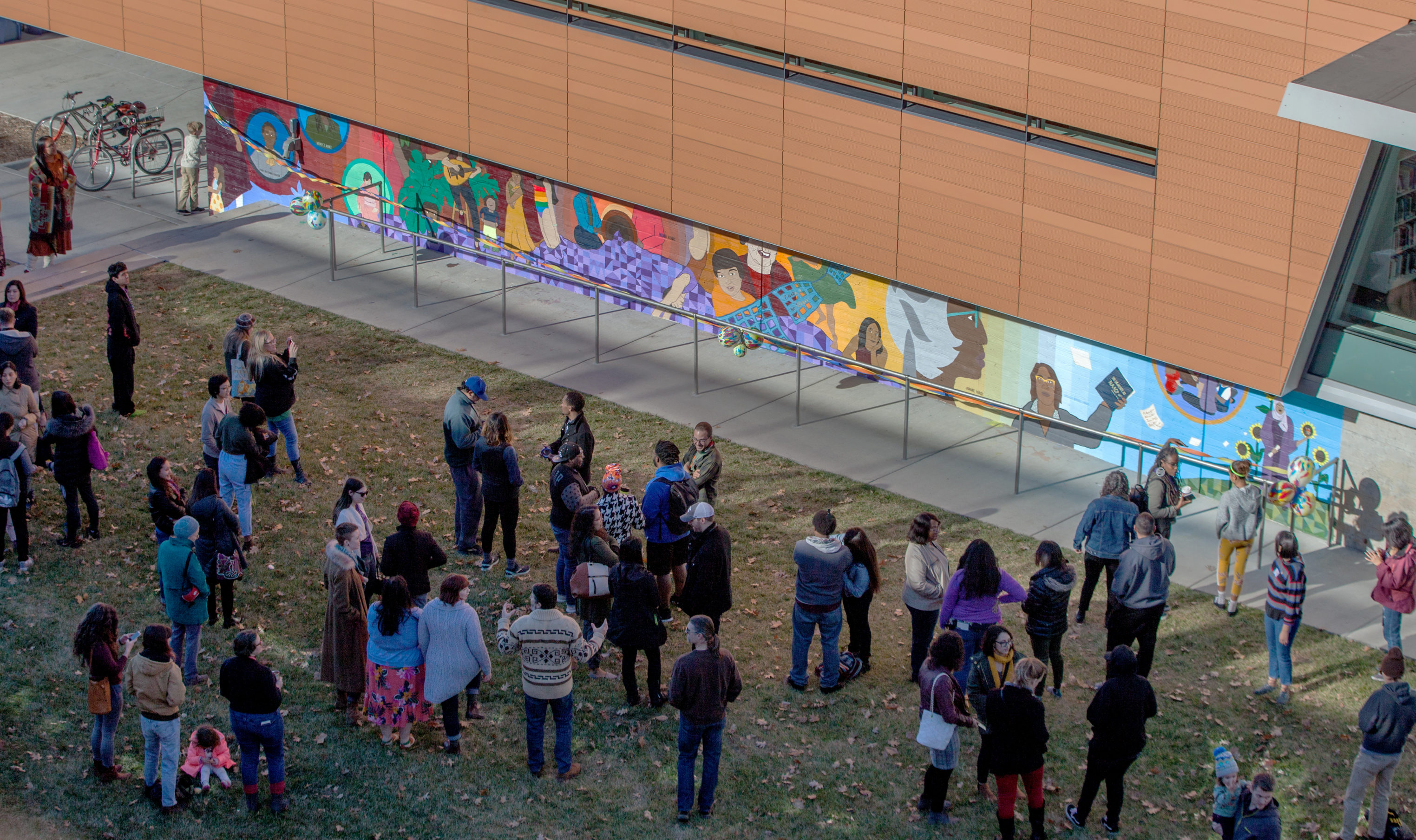 Designers of the “Wak’ó Mujeres Phụ nữ Women Mural” located on the south side of the Lawrence Public Library, 707 Vermont St., held a ribbon cutting and celebration of the mural on Saturday.