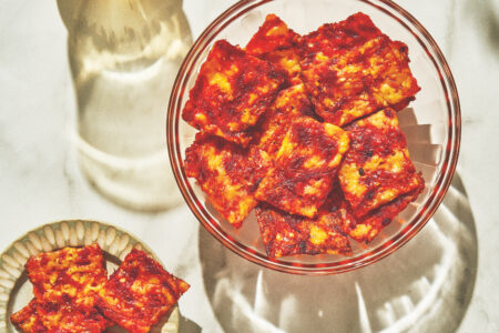 These are great with just about any cocktail, but I especially love them with a Garibaldi — the orange juice-based drink is a perfect sweet-tart counterpoint.