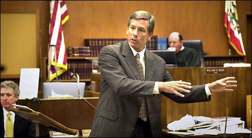 Deputy Dist. Atty. Jeff Dusek makes his rebuttal during closing arguments in the trial of David Westerfield in San Diego. A jury began deliberations Thursday in the case against Westerfield, who is accused of kidnapping and killing 7-year-old Danielle van Dam.