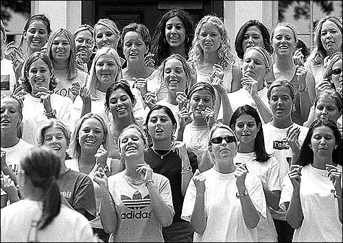 But almost one-fourth of the students at Kansas University belong to a fraternity or a sorority.