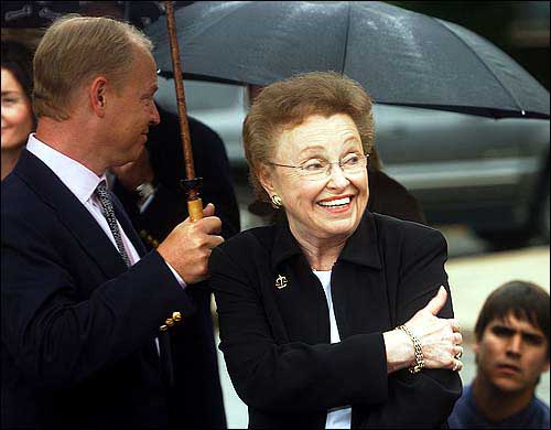 Dorthy Moxley walks away after speaking with reporters outside Superior Court in Norwalk,Conn. Michael Skakel, the man convicted of murdering her daughter, was sentenced to 20 years to life Thursday.