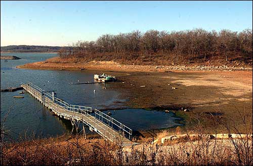 The reservoir system was built to maintain river flows and water supplies through the type of severe drought that struck the Midwest in the 1950s, Lewis said. The shrinking lake levels are where the drought’s effect is the most visible, he said.