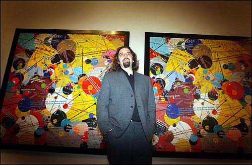 Painter and sculptor Keith Tyson stands in front of his work Bubble