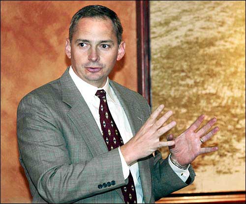 FBI special agent Scott Williams speaks at the Lawrence Technology Assn. luncheon. Williams discussed cybercrime Wednesday at the Hereford House.