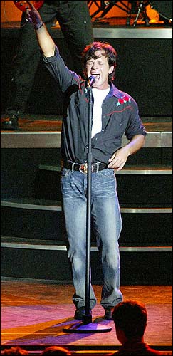 On a spare, black stage Mellencamp was flanked by Miriam Sturm on violin and Andy York and Mike Wanchic on guitars. On an elaborate riser was Moe Z on keyboards, John Gunnell on bass, drummer Dane Clark, vocalists Pat Peterson and Courtney Kaiser and Jenn Christy on percussion.