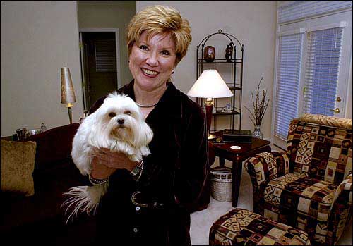 Jeanne Schinstock holds her dog, Heidi, in her Logan Mill at the Ridges home in Omaha, Neb. Logan Mill isn't a retirement community. It's a housing development designed for active