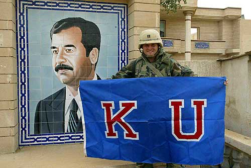 As U.S. forces advanced on the Iraqi capital of Baghdad, fraternity brothers and friends of Capt. Brad Loudon, a 1997 Kansas University graduate, were circulating this photo of Loudon that they found in their email inboxes along with a message from him early Friday morning.