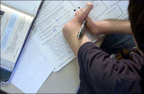 Andreas Brandenberger writes in his Spanish workbook during class at Baldwin High. Brandenberger is on course to graduate with honors.