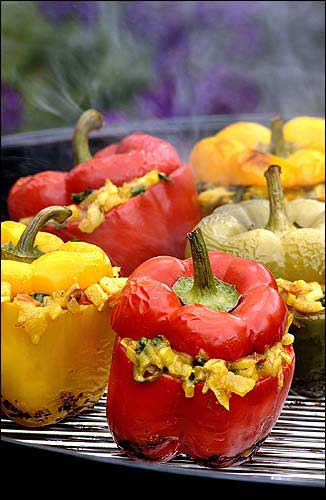 Stuffed peppers make unique grilling fare but care must be taken with temperature.