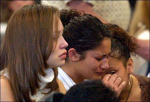 Family members of victim Patricia Yellowrobe, from left, Donna Whitford, a niece, Emerald Yellowrobe, daughter, and Kendra Stevens, a niece, comfort one another as Gary Ridgway pleads guilty in the King County Courthouse in Seattle. Ridgway pleaded guilty to 48 counts of murder in the Green River Killer serial murder case, which began in 1982 and was the largest unsolved serial murder case in American history.