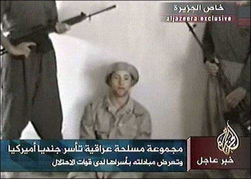 Kidnapped American soldier Keith Matthew Maupin, 20, of Batavia, Ohio, is surrounded by his captors in this undated image made from video broadcast Friday by Arab television station Al-Jazeera. Maupin was listed as missing on April 9, when his convoy was attacked outside Baghdad, Iraq.