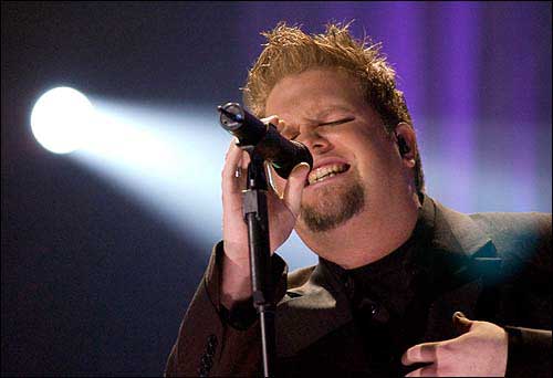 Bart Millard, lead singer for MercyMe, performs during the 34th annual Gospel Music Association Awards in Nashville, Tenn.