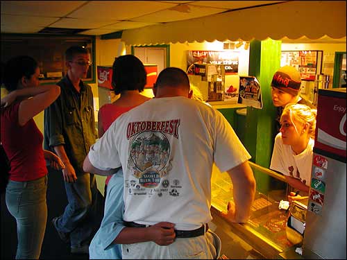 As the screen’s dull glow replaces the sunset’s last gasp, the 300-plus paid customers settle into their pickup trucks, minivans, lawn chairs and blankets to watch the show. The concession stand hurries out cartons of popcorn — small $1.80, large $2.70 — and cheeseburgers to hungry parents and toddlers. There’s no big rush, though — this is the Midway, one of only eight theaters in Kansas where you can watch the movie from the concession stand or on your way to the bathroom (or, for the less inhibited, WHILE you’re going to the bathroom).
