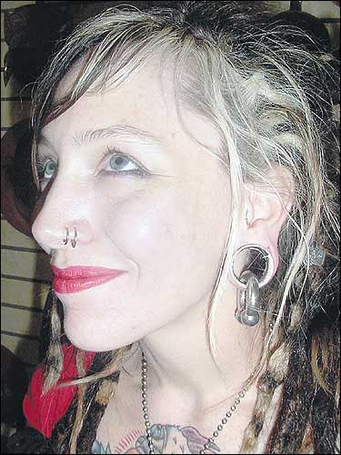 Kristen Ferrell, a Kansas University fine arts graduate, takes body art seriously. Besides tattoos, she has two piercings in her nose, five in her ears and a belly ring.
