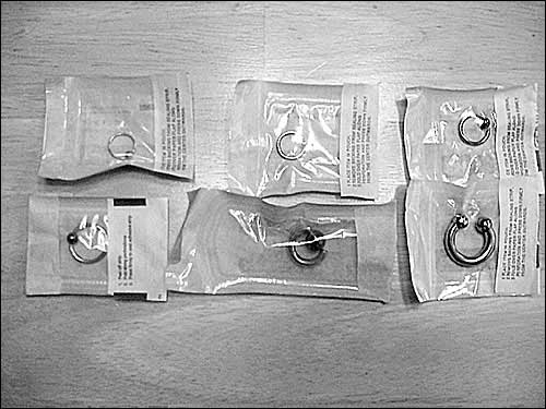 Here are ring samples used for noses and bellies.