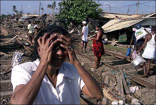 An unidentified woman cries after tidal waves destroyed her house in Colombo, Sri Lanka. The most powerful earthquake in 40 years Sunday triggered massive tidal waves that slammed coastlines across Asia. The U.S. Geological Survey said the 9.0-magnitude earthquake in Indonesia was the largest in the world since a 9.2 temblor hit Alaska in 1964.