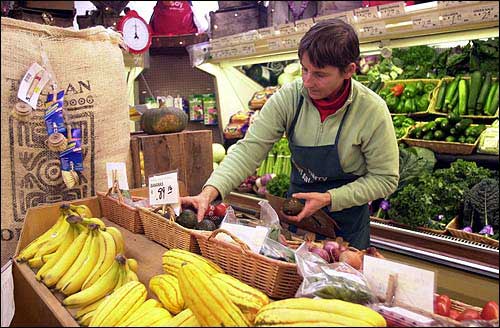Ginger Riege-Blackman stocks food at the Concord Food Co-Op in Concord, N.H. Since the discovery of a mad cow case in Washington state, American vegetarians mostly have been careful not to take advantage of the situation.