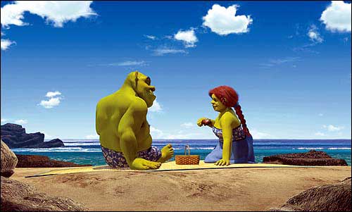 The ogre Shrek, left (voiced by Mike Myers), and Fiona (Cameron Diaz) enjoy their honeymoon in Shrek