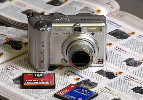 This 3.2 megapixel digital point-and-shoot camera is one of two used by reporters at the Lawrence Journal-World. The quality of this camera is good enough for quality color enlargements of at least 5-by-7 inches and for smaller color and black and white published images in the newspaper. The camera is loaded with a 128mb Compact Flash memory card and at the camera's highest quality setting the card can hold a maximum of 138 images.